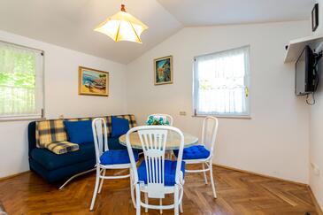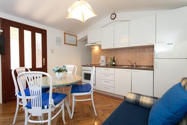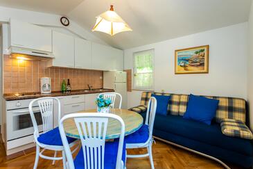 Ferienwohnung bietet Platz für 2 Gäste. Die Betten sind in Schlafzimmern, die es 1 gibt, innerhalb einer Gesamtfläche von 35m2, angeordnet. Die Gäste haben eine eigene Terrasse zur Verfügung, auf der sie in warmen Sommernächten genießen können.