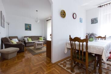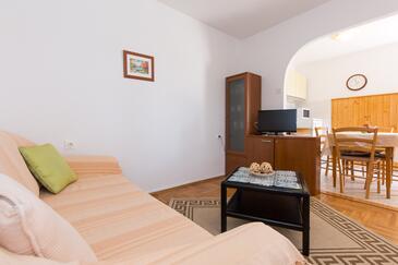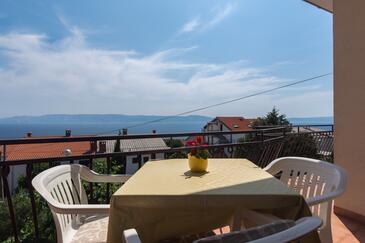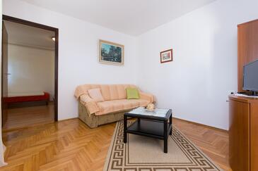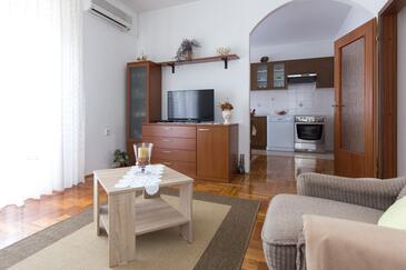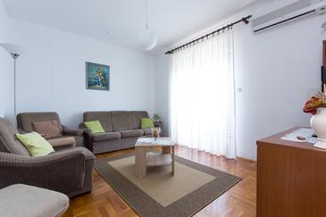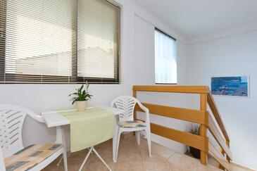 Ferienwohnung bietet Platz für 7 Gäste. Die Betten sind in Schlafzimmern, die es 3 gibt, innerhalb einer Gesamtfläche von 68m2, angeordnet. Die Gäste haben einen eigenen Balkon zur Verfügung, auf der sie in warmen Sommernächten genießen können. Das Apartment bietet Meerblick. Es ist erlaubt, Speisen auf dem Gemeinschafts-Grill vorzubereiten.