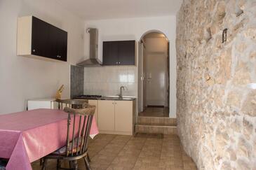 Haus bietet Platz für 5 Gäste. Die Betten sind in Schlafzimmern, die es 3 gibt, innerhalb einer Gesamtfläche von 92m2, angeordnet. Die Gäste haben eine eigene Terrasse zur Verfügung, auf der sie in warmen Sommernächten genießen können. Das Haus bietet Meerblick. In der Unterkunftseinheit besteht die Möglichkeit des Mitbringens von Haustieren, und die Dienstleistung ist im Preis der Unterkunft enthalten.
