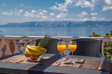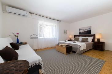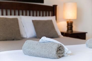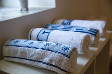 Haus bietet Platz für 8 Gäste. Die Betten sind in Schlafzimmern, die es 3 gibt, und in Wohnzimmer, innerhalb einer Gesamtfläche von 125m2, angeordnet. Die Gäste haben eine eigene Terrasse zur Verfügung, auf der sie in warmen Sommernächten genießen können. Das Haus bietet Meerblick. Für vollen Genuss und Entspannung gibt es einen privaten Grill für Gäste dieser Unterkunft.