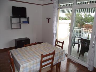 Studio bietet Platz für 4 Gäste. Die Betten sind in Schlafzimmern, die es 2 gibt, innerhalb einer Gesamtfläche von 46m2, angeordnet. Die Gäste haben eine eigene Terrasse zur Verfügung, auf der sie in warmen Sommernächten genießen können. Das Studio-Apartment bietet Meerblick. In der gebuchten Unterkunftseinheit zahlt man am Ort ein Depositum ( der Preis ist an der Internetseite angeführt ).