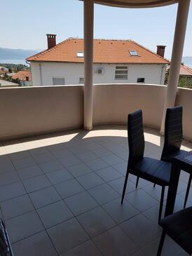 Ferienwohnung bietet Platz für 7 Gäste. Die Betten sind in Schlafzimmern, die es 2 gibt, und in Wohnzimmer, innerhalb einer Gesamtfläche von 69m2, angeordnet. Die Gäste haben eine eigene Terrasse zur Verfügung, auf der sie in warmen Sommernächten genießen können. Es ist erlaubt, Speisen auf dem Gemeinschafts-Grill vorzubereiten.
