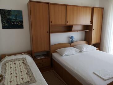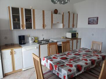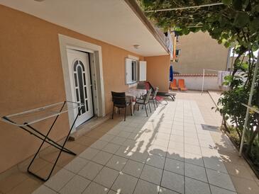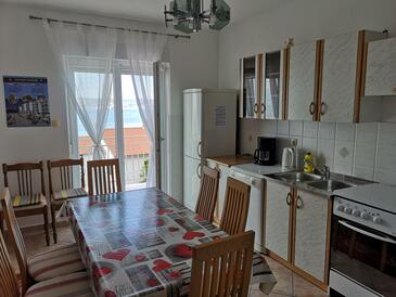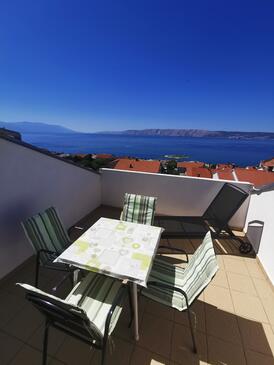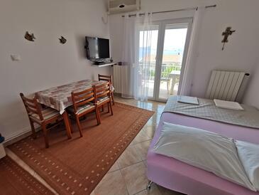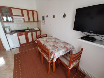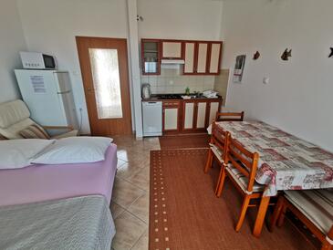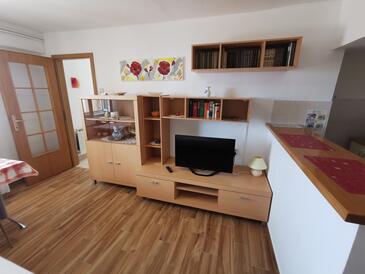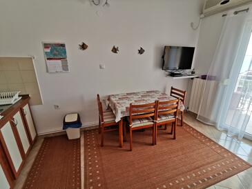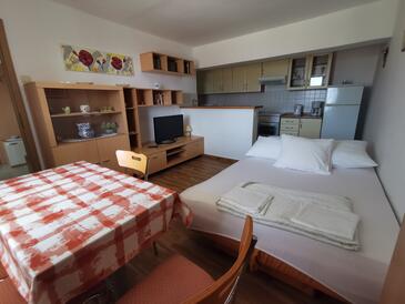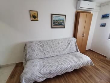 Ferienwohnung bietet Platz für 4 Gäste. Die Betten sind in Schlafzimmern, die es 1 gibt, und in Wohnzimmer, innerhalb einer Gesamtfläche von 42m2, angeordnet. Die Gäste haben eine eigene Terrasse zur Verfügung, auf der sie in warmen Sommernächten genießen können. Das Apartment bietet Meerblick. Es ist erlaubt, Speisen auf dem Gemeinschafts-Grill vorzubereiten.