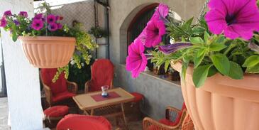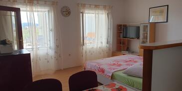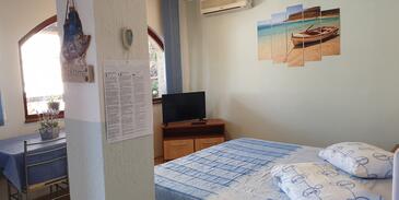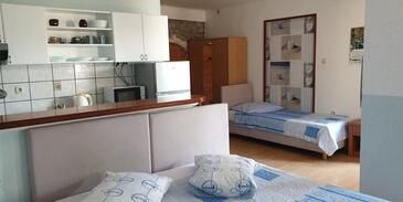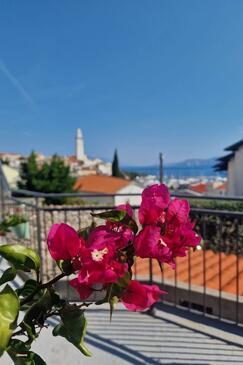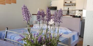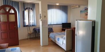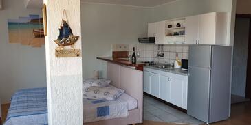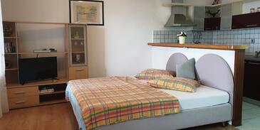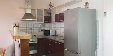 Ferienwohnung bietet Platz für 4 Gäste. Die Betten sind in Schlafzimmern, die es 2 gibt, innerhalb einer Gesamtfläche von 62m2, angeordnet. Die Gäste haben eine eigene Terrasse zur Verfügung, auf der sie in warmen Sommernächten genießen können. Das Apartment bietet Meerblick. Es ist erlaubt, Speisen auf dem Gemeinschafts-Grill vorzubereiten. In der Unterkunftseinheit besteht die Möglichkeit des Mitbringens von Haustieren gegen Aufpreis.