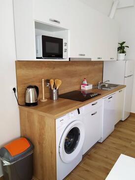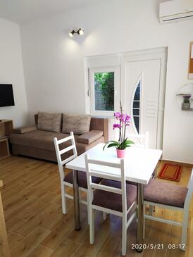 Ferienwohnung bietet Platz für 4 Gäste. Die Betten sind in Schlafzimmern, die es 1 gibt, und in Wohnzimmer, innerhalb einer Gesamtfläche von 30m2, angeordnet. Die Gäste haben eine eigene Terrasse zur Verfügung, auf der sie in warmen Sommernächten genießen können.