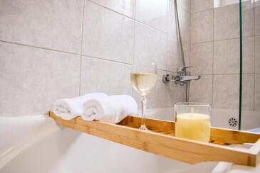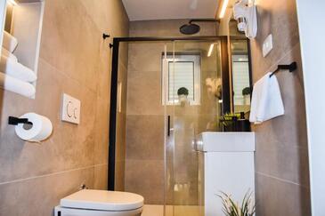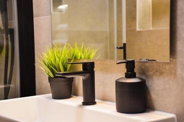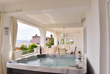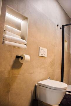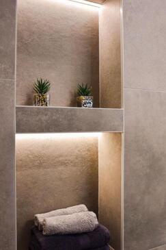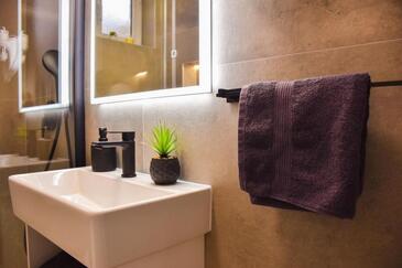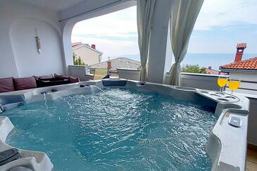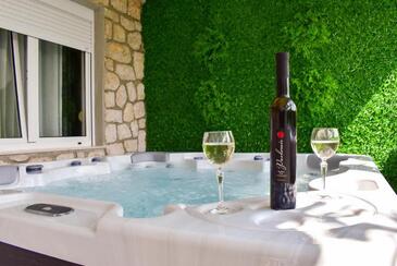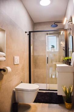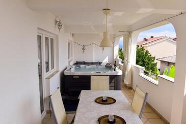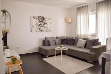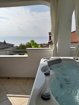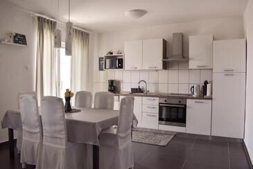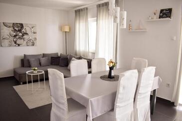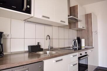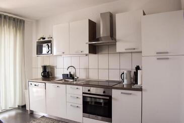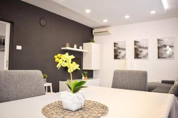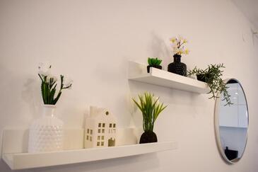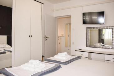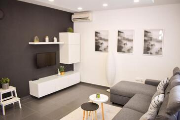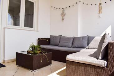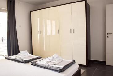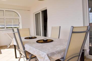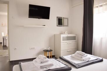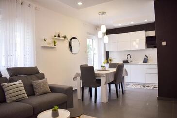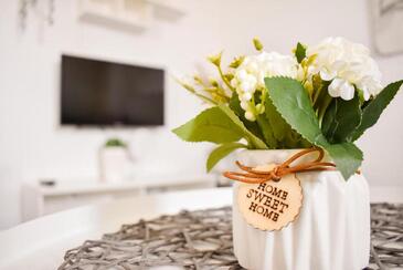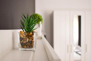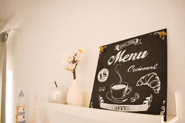 Ferienwohnung bietet Platz für 4 Gäste. Die Betten sind in Schlafzimmern, die es 2 gibt, innerhalb einer Gesamtfläche von 75m2, angeordnet. Die Gäste haben eine eigene Terrasse zur Verfügung, auf der sie in warmen Sommernächten genießen können. Das Apartment bietet Meerblick. Es ist erlaubt, Speisen auf dem Gemeinschafts-Grill vorzubereiten.