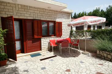 Ferienwohnung bietet Platz für 5 Gäste. Die Betten sind in Schlafzimmern, die es 2 gibt, und in Esszimmer, innerhalb einer Gesamtfläche von 61m2, angeordnet. Die Gäste haben eine eigene Terrasse zur Verfügung, auf der sie in warmen Sommernächten genießen können. Es ist erlaubt, Speisen auf dem Gemeinschafts-Grill vorzubereiten. Durch die Terrasse der gebuchten Unterkunftseinheit gehen auch andere Gäste oder Vermieter.