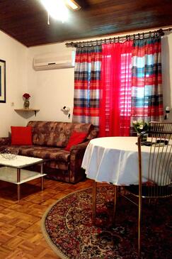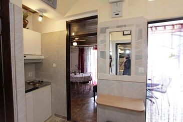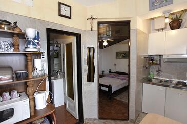 Ferienwohnung bietet Platz für 3 Gäste. Die Betten sind in Schlafzimmern, die es 1 gibt, und in Esszimmer, innerhalb einer Gesamtfläche von 30m2, angeordnet. Die Gäste haben eine eigene Terrasse zur Verfügung, auf der sie in warmen Sommernächten genießen können. Das Apartment bietet Meerblick. Es ist erlaubt, Speisen auf dem Gemeinschafts-Grill vorzubereiten.