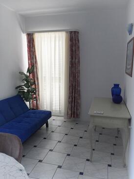 Ferienwohnung bietet Platz für 5 Gäste. Die Betten sind in Schlafzimmern, die es 2 gibt, innerhalb einer Gesamtfläche von 46m2, angeordnet. Die Gäste haben einen eigenen Balkon zur Verfügung, auf der sie in warmen Sommernächten genießen können. Das Apartment bietet Meerblick. Es ist erlaubt, Speisen auf dem Gemeinschafts-Grill vorzubereiten. In der Unterkunftseinheit besteht die Möglichkeit des Mitbringens von Haustieren gegen Aufpreis. Die reservierte Unterkunftseinheit verfügt über einen gemeinsame Terrasse.
