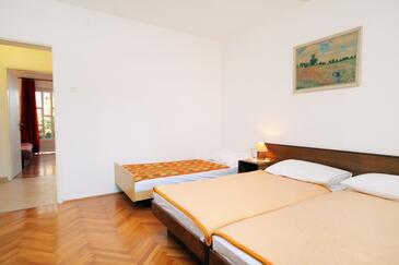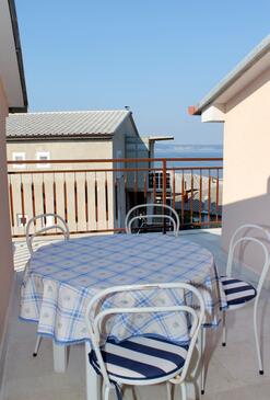 Ferienwohnung bietet Platz für 6 Gäste. Die Betten sind in Schlafzimmern, die es 2 gibt, innerhalb einer Gesamtfläche von 67m2, angeordnet. Die Gäste haben eine eigene Terrasse zur Verfügung, auf der sie in warmen Sommernächten genießen können. Das Apartment bietet Meerblick. Es ist erlaubt, Speisen auf dem Gemeinschafts-Grill vorzubereiten.