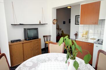 Ferienwohnung bietet Platz für 5 Gäste. Die Betten sind in Schlafzimmern, die es 2 gibt, und in Wohnzimmer, innerhalb einer Gesamtfläche von 41m2, angeordnet. Die Gäste haben eine eigene Terrasse zur Verfügung, auf der sie in warmen Sommernächten genießen können. Es ist erlaubt, Speisen auf dem Gemeinschafts-Grill vorzubereiten. In der Unterkunftseinheit besteht die Möglichkeit des Mitbringens von Haustieren gegen Aufpreis.