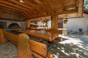 Haus bietet Platz für 6 Gäste. Die Betten sind in Schlafzimmern, die es 2 gibt, und in Wohnzimmer, innerhalb einer Gesamtfläche von 100m2, angeordnet. Die Gäste haben eine eigene Terrasse zur Verfügung, auf der sie in warmen Sommernächten genießen können. Für vollen Genuss und Entspannung gibt es einen privaten Grill für Gäste dieser Unterkunft. Während ihres Aufenthalts können sich Gäste im privaten Schwimmbad entspannen. In der Unterkunftseinheit besteht die Möglichkeit des Mitbringens von Haustieren, und die Dienstleistung ist im Preis der Unterkunft enthalten.
