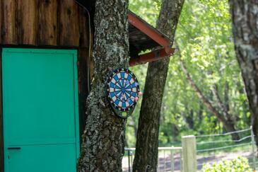 Haus bietet Platz für 6 Gäste. Die Betten sind in Schlafzimmern, die es 2 gibt, und in Wohnzimmer, innerhalb einer Gesamtfläche von 100m2, angeordnet. Die Gäste haben eine eigene Terrasse zur Verfügung, auf der sie in warmen Sommernächten genießen können. Für vollen Genuss und Entspannung gibt es einen privaten Grill für Gäste dieser Unterkunft. Während ihres Aufenthalts können sich Gäste im privaten Schwimmbad entspannen. In der Unterkunftseinheit besteht die Möglichkeit des Mitbringens von Haustieren, und die Dienstleistung ist im Preis der Unterkunft enthalten.