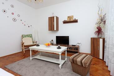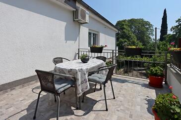Ferienwohnung bietet Platz für 6 Gäste. Die Betten sind in Schlafzimmern, die es 2 gibt, und in Wohnzimmer, innerhalb einer Gesamtfläche von 71m2, angeordnet. Die Gäste haben eine eigene Terrasse zur Verfügung, auf der sie in warmen Sommernächten genießen können. Das Apartment bietet Meerblick. Es ist erlaubt, Speisen auf dem Gemeinschafts-Grill vorzubereiten. In der Unterkunftseinheit besteht die Möglichkeit des Mitbringens von Haustieren gegen Aufpreis.