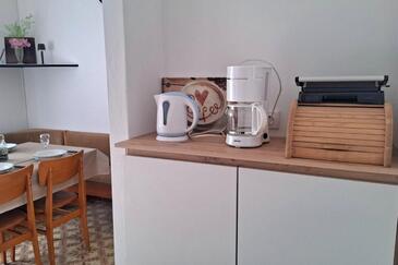 Ferienwohnung bietet Platz für 6 Gäste. Die Betten sind in Schlafzimmern, die es 2 gibt, und in Wohnzimmer, innerhalb einer Gesamtfläche von 71m2, angeordnet. Die Gäste haben eine eigene Terrasse zur Verfügung, auf der sie in warmen Sommernächten genießen können. Das Apartment bietet Meerblick. Es ist erlaubt, Speisen auf dem Gemeinschafts-Grill vorzubereiten. In der Unterkunftseinheit besteht die Möglichkeit des Mitbringens von Haustieren gegen Aufpreis.