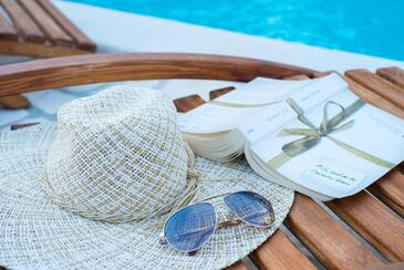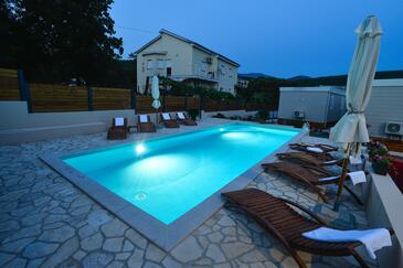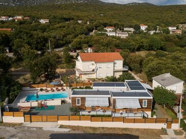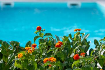 Ferienwohnung bietet Platz für 5 Gäste. Die Betten sind in Schlafzimmern, die es 2 gibt, und in Wohnzimmer, innerhalb einer Gesamtfläche von 34m2, angeordnet. Die Gäste haben eine eigene Terrasse zur Verfügung, auf der sie in warmen Sommernächten genießen können. Es ist erlaubt, Speisen auf dem Gemeinschafts-Grill vorzubereiten. Während ihres Aufenthalts können Gäste das gemeinsam zur Nutzung stehende Schwimmbad benutzen.