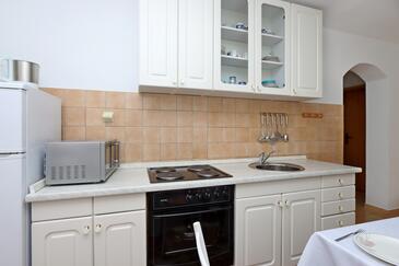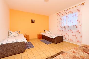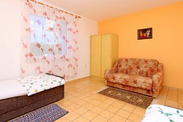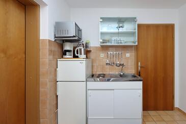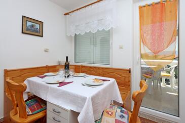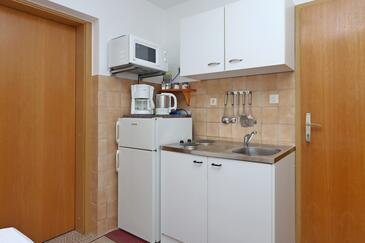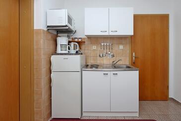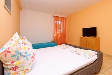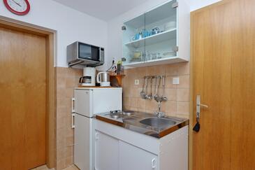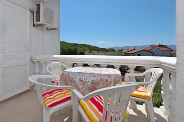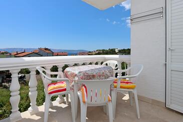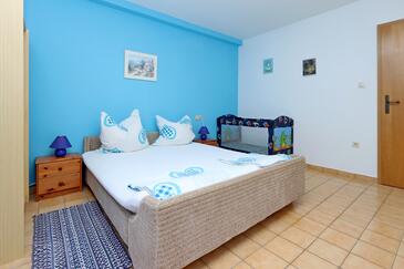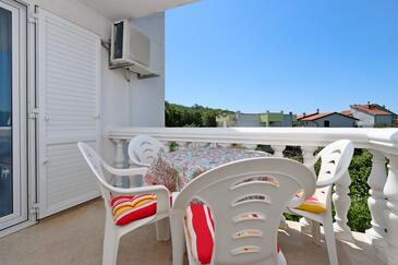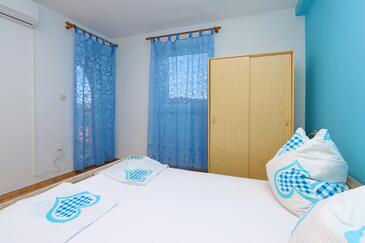 Ferienwohnung bietet Platz für 4 Gäste. Die Betten sind in Schlafzimmern, die es 2 gibt, innerhalb einer Gesamtfläche von 50m2, angeordnet. Die Gäste haben einen eigenen Balkon zur Verfügung, auf der sie in warmen Sommernächten genießen können. Das Apartment bietet Meerblick. Es ist erlaubt, Speisen auf dem Gemeinschafts-Grill vorzubereiten.