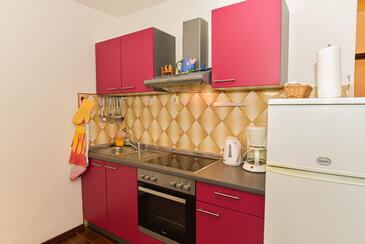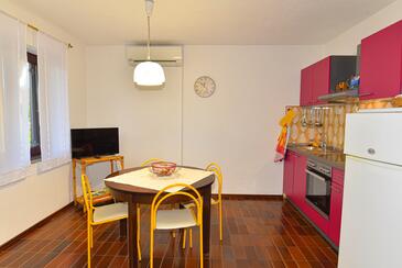 Ferienwohnung bietet Platz für 5 Gäste. Die Betten sind in Schlafzimmern, die es 2 gibt, innerhalb einer Gesamtfläche von 43m2, angeordnet. Die Gäste haben eine eigene Terrasse zur Verfügung, auf der sie in warmen Sommernächten genießen können.