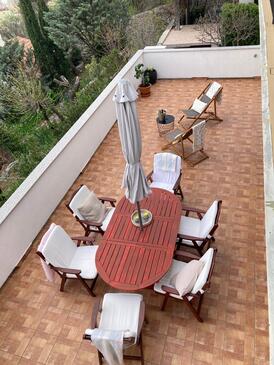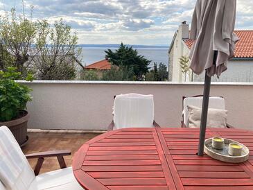 Ferienwohnung bietet Platz für 6 Gäste. Die Betten sind in Schlafzimmern, die es 2 gibt, innerhalb einer Gesamtfläche von 69m2, angeordnet. Die Gäste haben eine eigene Terrasse zur Verfügung, auf der sie in warmen Sommernächten genießen können. Das Apartment bietet Meerblick. Es ist erlaubt, Speisen auf dem Gemeinschafts-Grill vorzubereiten. In der Unterkunftseinheit besteht die Möglichkeit des Mitbringens von Haustieren, und die Dienstleistung ist im Preis der Unterkunft enthalten.