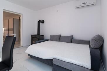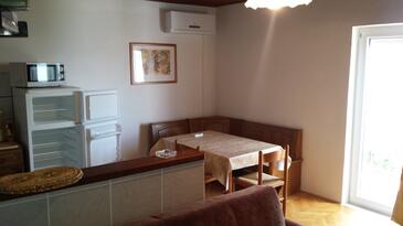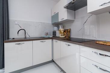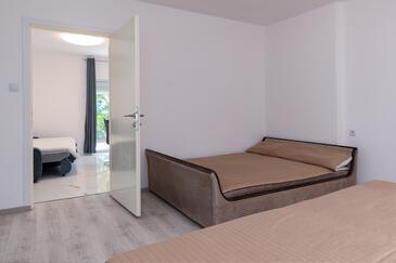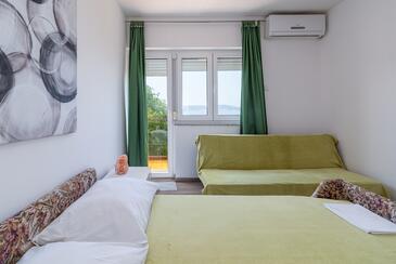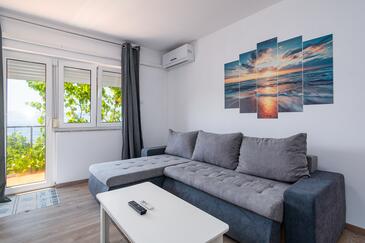 Ferienwohnung bietet Platz für 4 Gäste. Die Betten sind in Schlafzimmern, die es 1 gibt, und in Wohnzimmer, innerhalb einer Gesamtfläche von 48m2, angeordnet. Die Gäste haben einen eigenen Balkon zur Verfügung, auf der sie in warmen Sommernächten genießen können. Das Apartment bietet Meerblick. Es ist erlaubt, Speisen auf dem Gemeinschafts-Grill vorzubereiten.