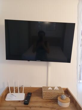 Ferienwohnung bietet Platz für 4 Gäste. Die Betten sind in Schlafzimmern, die es 2 gibt, innerhalb einer Gesamtfläche von 65m2, angeordnet. Die Gäste haben eine eigene Terrasse zur Verfügung, auf der sie in warmen Sommernächten genießen können. Das Apartment bietet Meerblick. Es ist erlaubt, Speisen auf dem Gemeinschafts-Grill vorzubereiten.