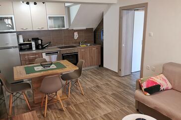 Ferienwohnung bietet Platz für 4 Gäste. Die Betten sind in Schlafzimmern, die es 1 gibt, und in Wohnzimmer, innerhalb einer Gesamtfläche von 56m2, angeordnet. Die Gäste haben eine eigene Terrasse zur Verfügung, auf der sie in warmen Sommernächten genießen können.