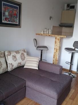 Studio bietet Platz für 2 Gäste. Die Betten sind in Wohnzimmer, innerhalb einer Gesamtfläche von 19m2, angeordnet. Die Gäste haben eine eigene Terrasse zur Verfügung, auf der sie in warmen Sommernächten genießen können. Das Studio-Apartment bietet Meerblick. Es ist erlaubt, Speisen auf dem Gemeinschafts-Grill vorzubereiten. In der gebuchten Unterkunftseinheit zahlt man am Ort ein Depositum ( der Preis ist an der Internetseite angeführt ).