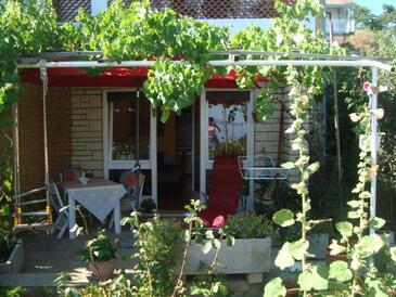 Studio bietet Platz für 2 Gäste. Die Betten sind in Wohnzimmer, innerhalb einer Gesamtfläche von 19m2, angeordnet. Die Gäste haben eine eigene Terrasse zur Verfügung, auf der sie in warmen Sommernächten genießen können. Das Studio-Apartment bietet Meerblick. Es ist erlaubt, Speisen auf dem Gemeinschafts-Grill vorzubereiten. In der gebuchten Unterkunftseinheit zahlt man am Ort ein Depositum ( der Preis ist an der Internetseite angeführt ).