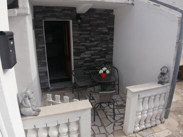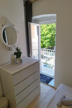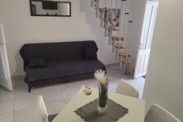 Ferienwohnung bietet Platz für 4 Gäste. Die Betten sind in Schlafzimmern, die es 2 gibt, innerhalb einer Gesamtfläche von 36m2, angeordnet. Die Gäste haben eine eigene Terrasse zur Verfügung, auf der sie in warmen Sommernächten genießen können. Das Apartment bietet Meerblick. Es ist erlaubt, Speisen auf dem Gemeinschafts-Grill vorzubereiten.