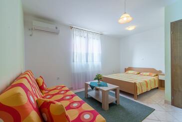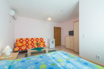 Ferienwohnung bietet Platz für 8 Gäste. Die Betten sind in Schlafzimmern, die es 4 gibt, innerhalb einer Gesamtfläche von 89m2, angeordnet. Die Gäste haben eine eigene Terrasse zur Verfügung, auf der sie in warmen Sommernächten genießen können. Das Apartment bietet Meerblick. Es ist erlaubt, Speisen auf dem Gemeinschafts-Grill vorzubereiten.