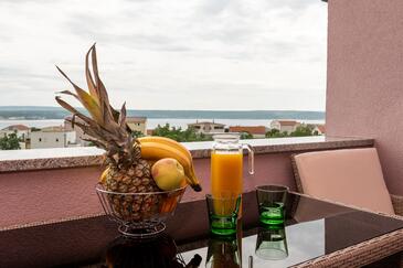Ferienwohnung bietet Platz für 6 Gäste. Die Betten sind in Schlafzimmern, die es 3 gibt, innerhalb einer Gesamtfläche von 97m2, angeordnet. Die Gäste haben eine eigene Terrasse zur Verfügung, auf der sie in warmen Sommernächten genießen können. Das Apartment bietet Meerblick. Für vollen Genuss und Entspannung gibt es einen privaten Grill für Gäste dieser Unterkunft.