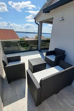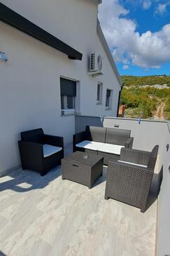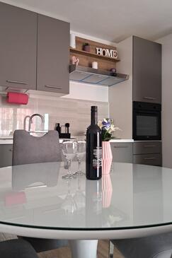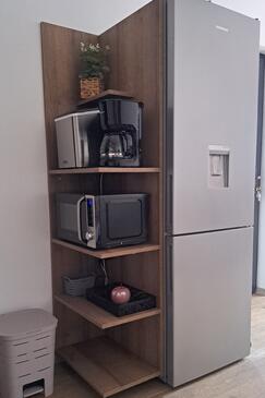 Haus bietet Platz für 16 Gäste. Die Betten sind in Schlafzimmern, die es 4 gibt, und in Wohnzimmer, innerhalb einer Gesamtfläche von 144m2, angeordnet. Die Gäste haben einen eigenen Balkon zur Verfügung, auf der sie in warmen Sommernächten genießen können. Das Haus bietet Meerblick. Für vollen Genuss und Entspannung gibt es einen privaten Grill für Gäste dieser Unterkunft. Während ihres Aufenthalts können Gäste das gemeinsam zur Nutzung stehende Schwimmbad benutzen. In der Unterkunftseinheit besteht die Möglichkeit des Mitbringens von Haustieren gegen Aufpreis. Räume der gebuchten Unterkunftseinheit werden nicht in eine Ganze verbunden.
