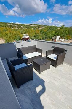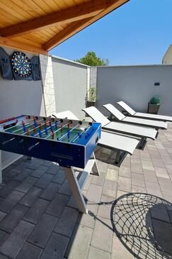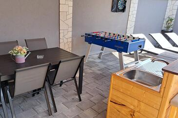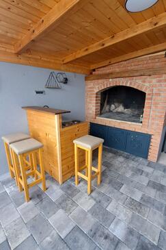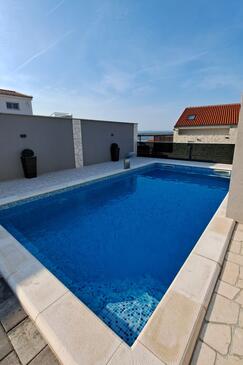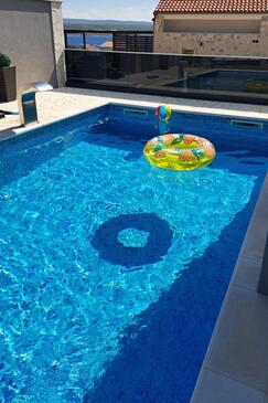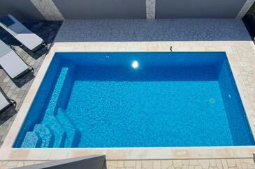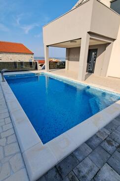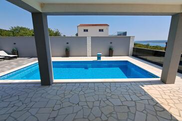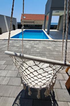 Haus bietet Platz für 16 Gäste. Die Betten sind in Schlafzimmern, die es 4 gibt, und in Wohnzimmer, innerhalb einer Gesamtfläche von 144m2, angeordnet. Die Gäste haben einen eigenen Balkon zur Verfügung, auf der sie in warmen Sommernächten genießen können. Das Haus bietet Meerblick. Für vollen Genuss und Entspannung gibt es einen privaten Grill für Gäste dieser Unterkunft. Während ihres Aufenthalts können Gäste das gemeinsam zur Nutzung stehende Schwimmbad benutzen. In der Unterkunftseinheit besteht die Möglichkeit des Mitbringens von Haustieren gegen Aufpreis. Räume der gebuchten Unterkunftseinheit werden nicht in eine Ganze verbunden.