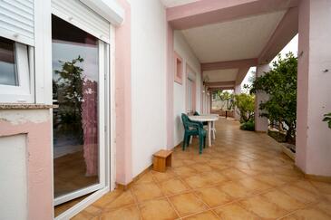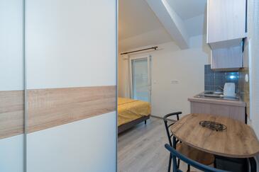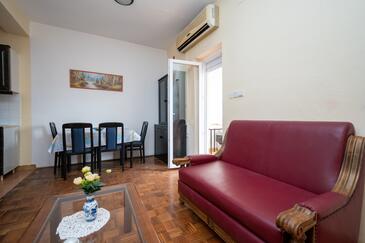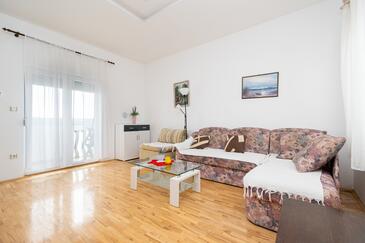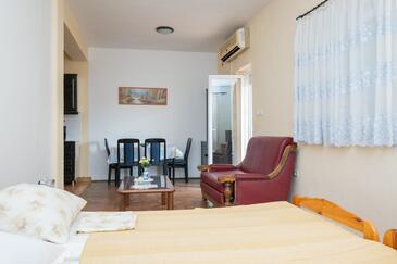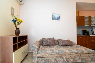 Ferienwohnung bietet Platz für 5 Gäste. Die Betten sind in Schlafzimmern, die es 2 gibt, und in Wohnzimmer, innerhalb einer Gesamtfläche von 62m2, angeordnet. Die Gäste haben einen eigenen Balkon zur Verfügung, auf der sie in warmen Sommernächten genießen können. Das Apartment bietet Meerblick. Es ist erlaubt, Speisen auf dem Gemeinschafts-Grill vorzubereiten.