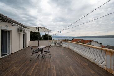 Ferienwohnung bietet Platz für 5 Gäste. Die Betten sind in Schlafzimmern, die es 2 gibt, und in Wohnzimmer, innerhalb einer Gesamtfläche von 62m2, angeordnet. Die Gäste haben einen eigenen Balkon zur Verfügung, auf der sie in warmen Sommernächten genießen können. Das Apartment bietet Meerblick. Es ist erlaubt, Speisen auf dem Gemeinschafts-Grill vorzubereiten.