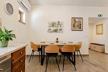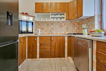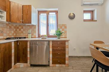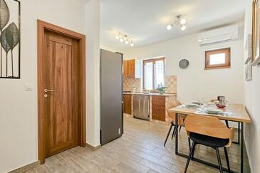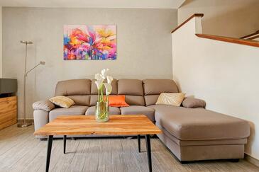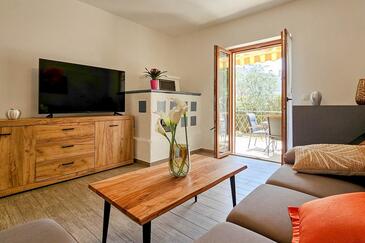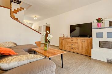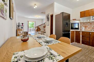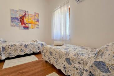 Haus bietet Platz für 5 Gäste. Die Betten sind in Schlafzimmern, die es 2 gibt, und in Wohnzimmer, innerhalb einer Gesamtfläche von 74m2, angeordnet. Die Gäste haben eine eigene Terrasse zur Verfügung, auf der sie in warmen Sommernächten genießen können.