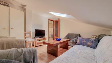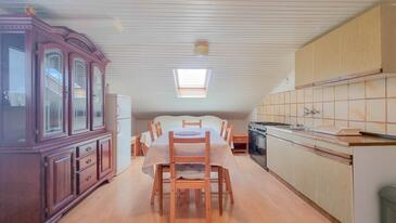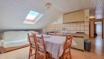 Ferienwohnung bietet Platz für 8 Gäste. Die Betten sind in Schlafzimmern, die es 4 gibt, innerhalb einer Gesamtfläche von 75m2, angeordnet. Die Gäste haben eine eigene Terrasse zur Verfügung, auf der sie in warmen Sommernächten genießen können. Das Apartment bietet Meerblick. Es ist erlaubt, Speisen auf dem Gemeinschafts-Grill vorzubereiten.