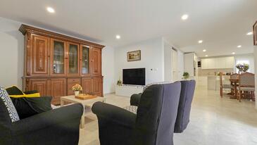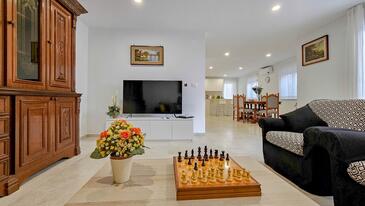 Haus bietet Platz für 6 Gäste. Die Betten sind in Schlafzimmern, die es 3 gibt, innerhalb einer Gesamtfläche von 145m2, angeordnet. Die Gäste haben eine eigene Terrasse zur Verfügung, auf der sie in warmen Sommernächten genießen können. Es ist erlaubt, Speisen auf dem Gemeinschafts-Grill vorzubereiten. Während ihres Aufenthalts können sich Gäste im privaten Schwimmbad entspannen. In der Unterkunftseinheit besteht die Möglichkeit des Mitbringens von Haustieren gegen Aufpreis.