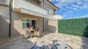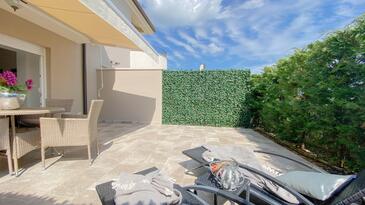 Ferienwohnung bietet Platz für 4 Gäste. Die Betten sind in Schlafzimmern, die es 1 gibt, und in Wohnzimmer, innerhalb einer Gesamtfläche von 56m2, angeordnet. Die Gäste haben eine eigene Terrasse zur Verfügung, auf der sie in warmen Sommernächten genießen können.