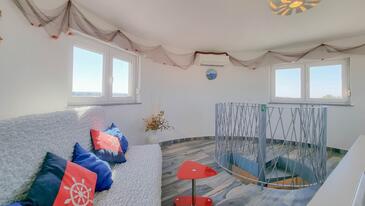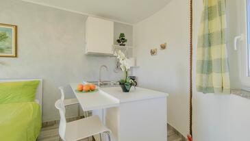 Ferienwohnung bietet Platz für 4 Gäste. Die Betten sind in Schlafzimmern, die es 1 gibt, und in Wohnzimmer, innerhalb einer Gesamtfläche von 27m2, angeordnet. Die Gäste haben eine eigene Terrasse zur Verfügung, auf der sie in warmen Sommernächten genießen können. Das Apartment bietet Meerblick. In der Unterkunftseinheit besteht die Möglichkeit des Mitbringens von Haustieren gegen Aufpreis.