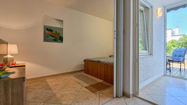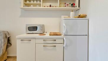Ferienwohnung bietet Platz für 4 Gäste. Die Betten sind in Schlafzimmern, die es 1 gibt, und in Wohnzimmer, innerhalb einer Gesamtfläche von 30m2, angeordnet. Die Gäste haben eine eigene Terrasse zur Verfügung, auf der sie in warmen Sommernächten genießen können. Es ist erlaubt, Speisen auf dem Gemeinschafts-Grill vorzubereiten.