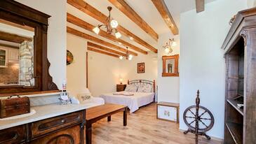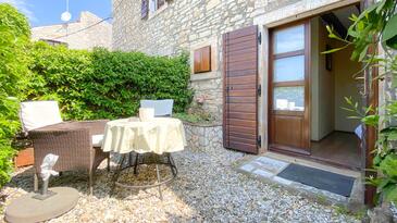 Ferienwohnung bietet Platz für 2 Gäste. Die Betten sind in Schlafzimmern, die es 1 gibt, innerhalb einer Gesamtfläche von 30m2, angeordnet. Die Gäste haben eine eigene Terrasse zur Verfügung, auf der sie in warmen Sommernächten genießen können. Während ihres Aufenthalts können Gäste das gemeinsam zur Nutzung stehende Schwimmbad benutzen.