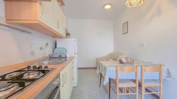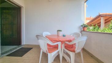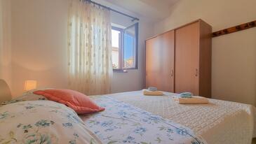 Ferienwohnung bietet Platz für 4 Gäste. Die Betten sind in Schlafzimmern, die es 2 gibt, innerhalb einer Gesamtfläche von 45m2, angeordnet. Die Gäste haben eine eigene Terrasse zur Verfügung, auf der sie in warmen Sommernächten genießen können. Es ist erlaubt, Speisen auf dem Gemeinschafts-Grill vorzubereiten.