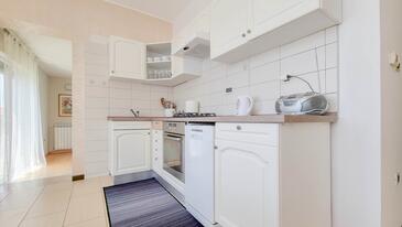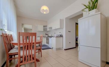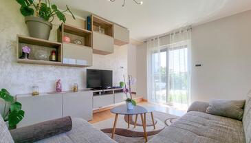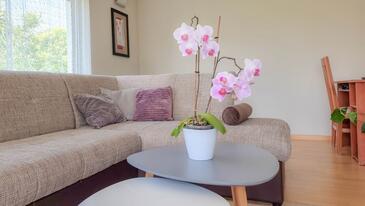 Ferienwohnung bietet Platz für 4 Gäste. Die Betten sind in Schlafzimmern, die es 2 gibt, innerhalb einer Gesamtfläche von 76m2, angeordnet. Die Gäste haben eine eigene Terrasse zur Verfügung, auf der sie in warmen Sommernächten genießen können. Es ist erlaubt, Speisen auf dem Gemeinschafts-Grill vorzubereiten.