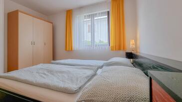 Ferienwohnung bietet Platz für 5 Gäste. Die Betten sind in Schlafzimmern, die es 2 gibt, innerhalb einer Gesamtfläche von 44m2, angeordnet. Die Gäste haben eine eigene Terrasse zur Verfügung, auf der sie in warmen Sommernächten genießen können. Es ist erlaubt, Speisen auf dem Gemeinschafts-Grill vorzubereiten.