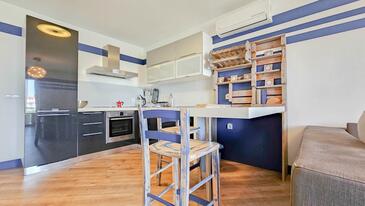 Ferienwohnung bietet Platz für 3 Gäste. Die Betten sind in Schlafzimmern, die es 1 gibt, und in Wohnzimmer, innerhalb einer Gesamtfläche von 36m2, angeordnet. Die Gäste haben einen eigenen Balkon zur Verfügung, auf der sie in warmen Sommernächten genießen können. Das Apartment bietet Meerblick. Für vollen Genuss und Entspannung gibt es einen privaten Grill für Gäste dieser Unterkunft. Während ihres Aufenthalts können Gäste das gemeinsam zur Nutzung stehende Schwimmbad benutzen.