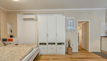Studio bietet Platz für 2 Gäste. Die Betten sind in Schlafzimmern, die es 1 gibt, innerhalb einer Gesamtfläche von 27m2, angeordnet. Die reservierte Unterkunftseinheit hat keinen Balkon und keine Terrasse.