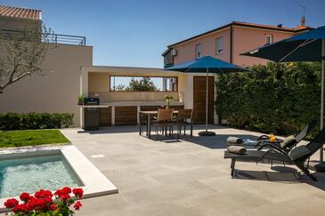Ferienwohnung bietet Platz für 4 Gäste. Die Betten sind in Schlafzimmern, die es 1 gibt, und in Wohnzimmer, innerhalb einer Gesamtfläche von 70m2, angeordnet. Die Gäste haben eine eigene Terrasse zur Verfügung, auf der sie in warmen Sommernächten genießen können. Es ist erlaubt, Speisen auf dem Gemeinschafts-Grill vorzubereiten. Während ihres Aufenthalts können sich Gäste im privaten Schwimmbad entspannen.