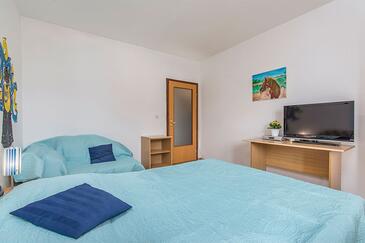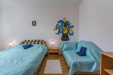 Ferienwohnung bietet Platz für 4 Gäste. Die Betten sind in Schlafzimmern, die es 2 gibt, innerhalb einer Gesamtfläche von 50m2, angeordnet. Die Gäste haben eine eigene Terrasse zur Verfügung, auf der sie in warmen Sommernächten genießen können. Es ist erlaubt, Speisen auf dem Gemeinschafts-Grill vorzubereiten.