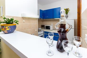 Ferienwohnung bietet Platz für 4 Gäste. Die Betten sind in Schlafzimmern, die es 1 gibt, und in Wohnzimmer, innerhalb einer Gesamtfläche von 40m2, angeordnet. Die Gäste haben einen eigenen Balkon zur Verfügung, auf der sie in warmen Sommernächten genießen können. In der Unterkunftseinheit besteht die Möglichkeit des Mitbringens von Haustieren, und die Dienstleistung ist im Preis der Unterkunft enthalten.